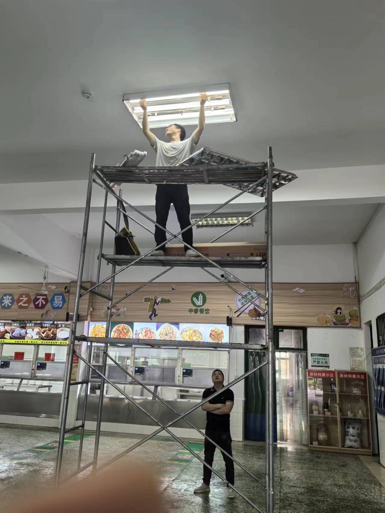 为给全校师生提供一个安全舒适的学习环境,后勤工作人员对全校高低压配电室和生活用水进行全面安全隐患排查,重点对生活用水、用电以及宿舍和教室内的消防栓、灯具等硬件设施,进行了认真排查,并对发现的问题及时进行了维修、更换,保障高考期间无问题。
