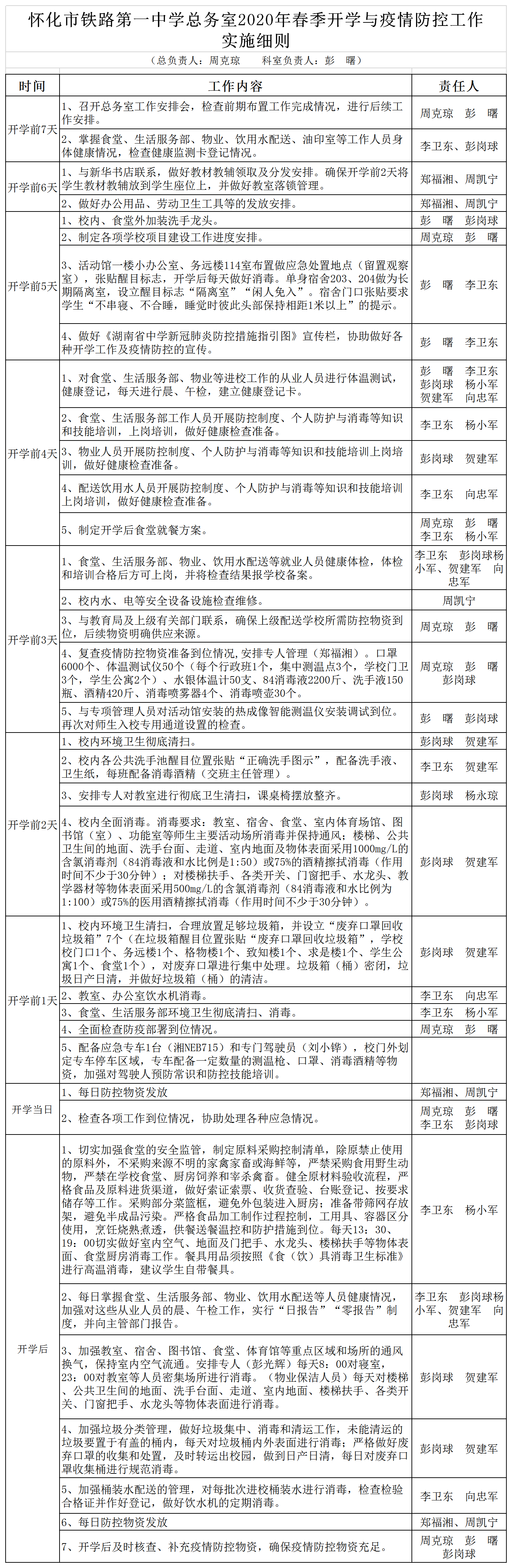 怀化市铁路第一中学总务室2020年春季开学与疫情防控工作实施细则