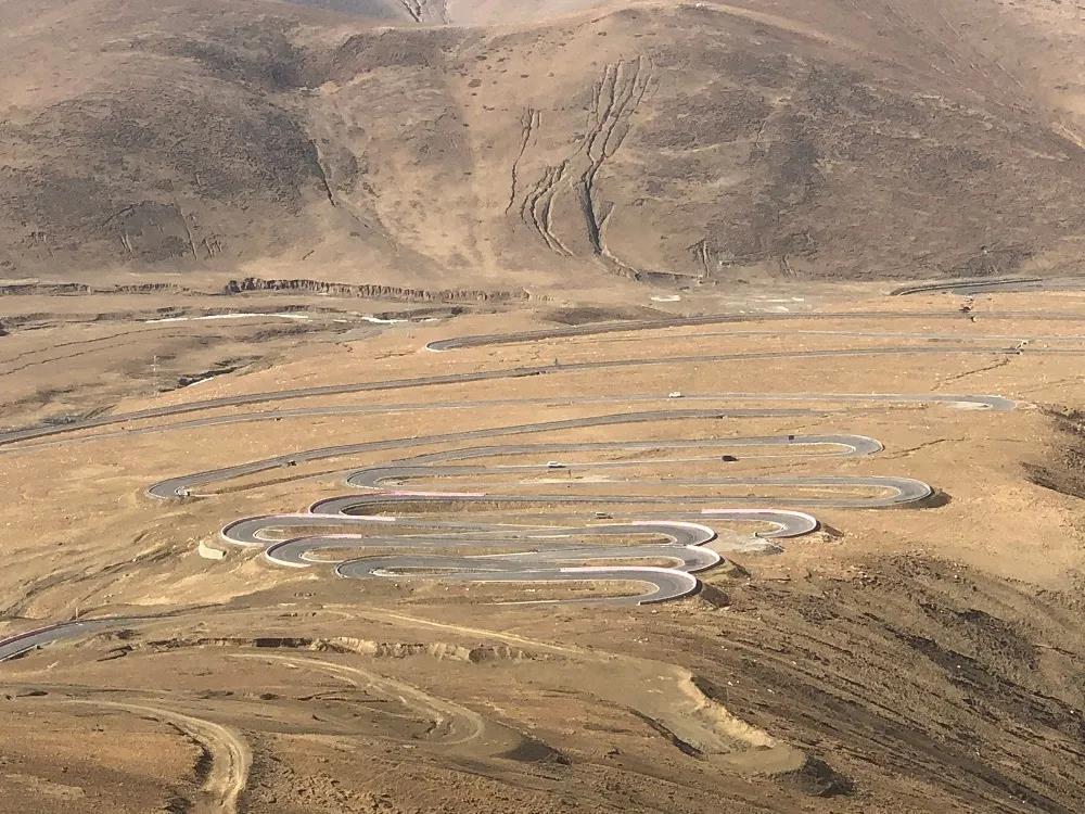 想要靠近神,必须经受考验。翻越加吾拉山,有著名的108拐,每一拐都是近乎180度的大转弯。从山顶望下去,公路就像是被稍稍拉开一点的弹簧,让人感到一种紧缩的力。我们坐在车里,身体不停地大幅度摇摆。司机小王说开一趟下来,打方向盘累得胳膊都疼。我开玩笑说,在加吾拉车神面前,秋名山车神根本不值一提。