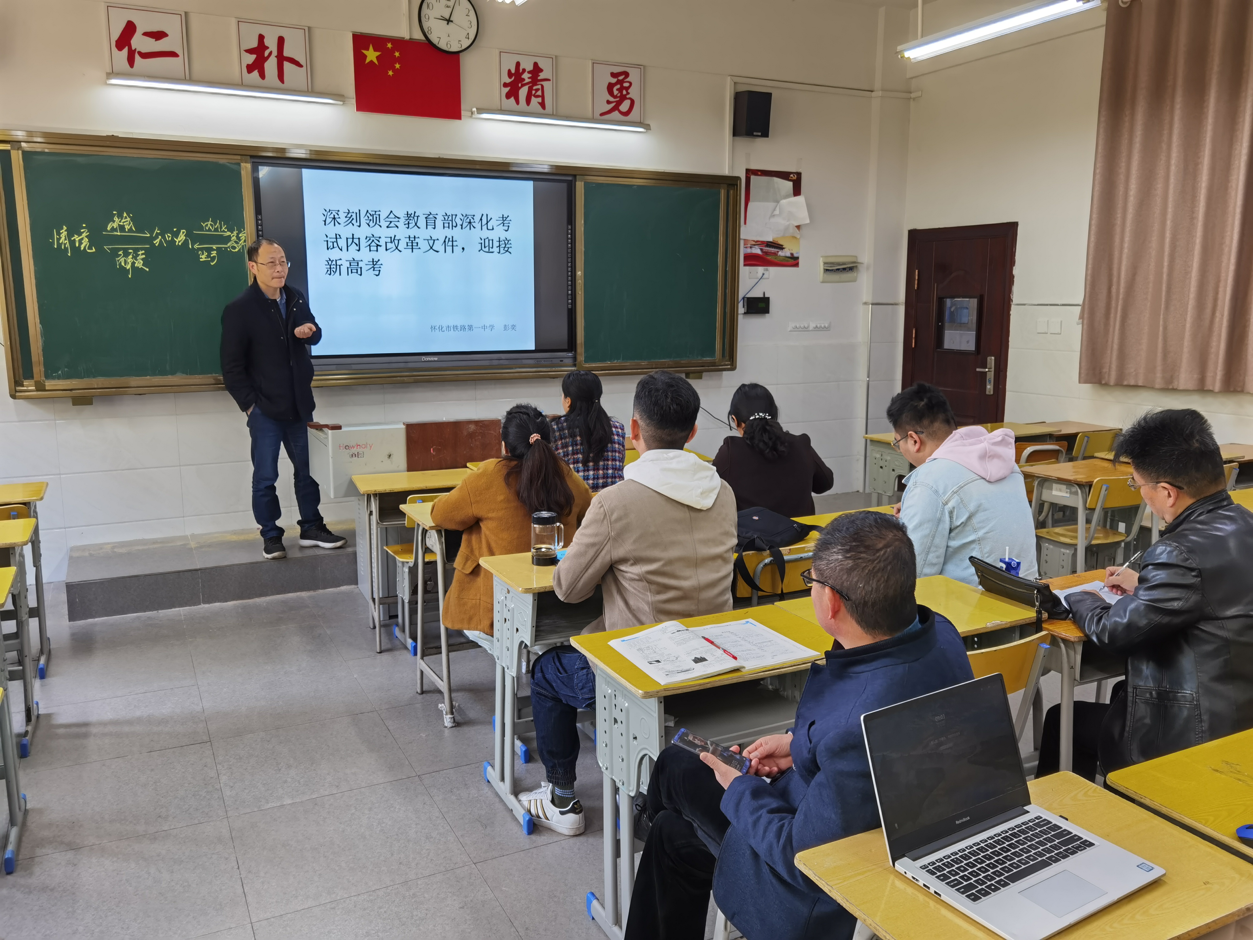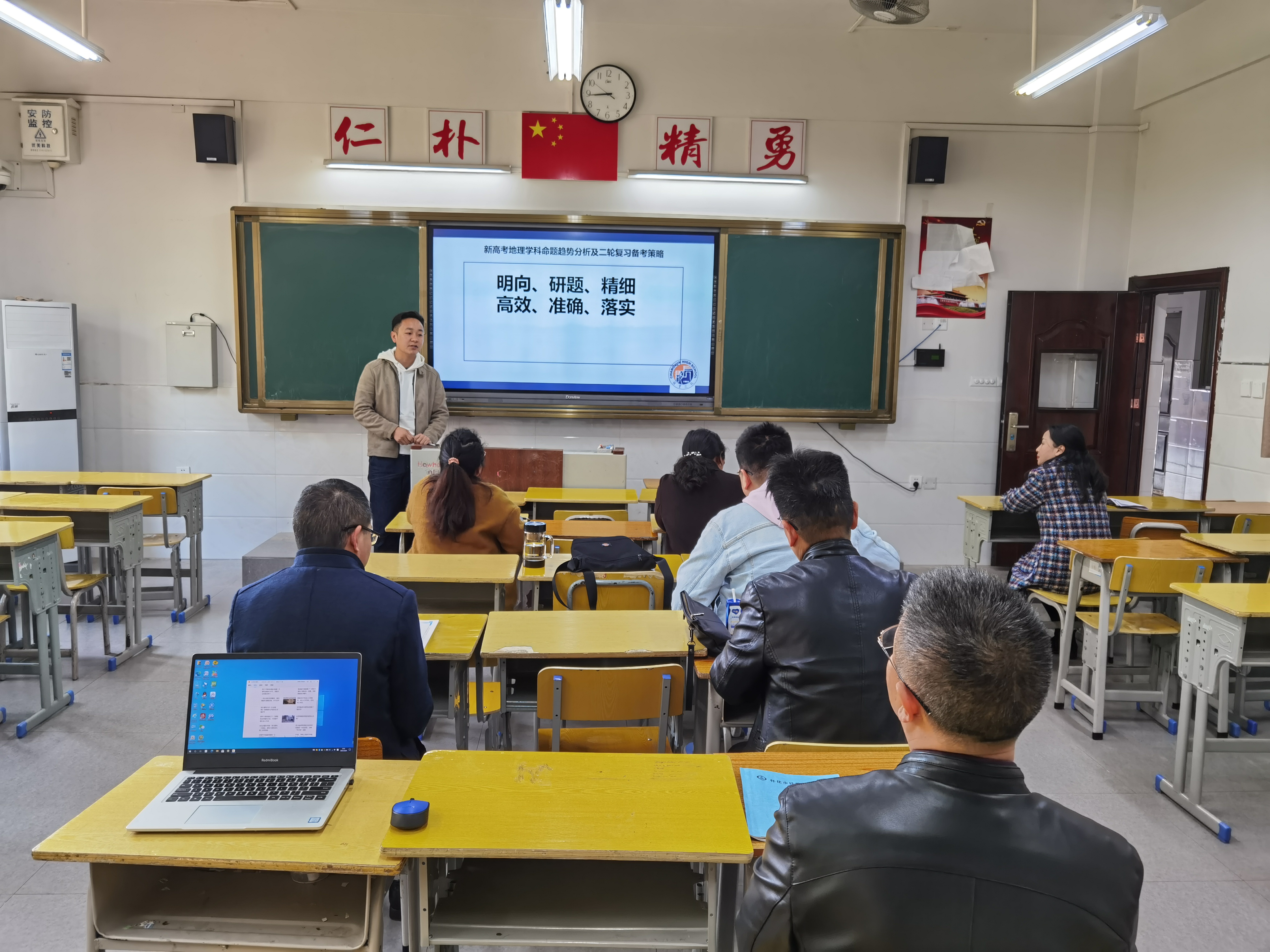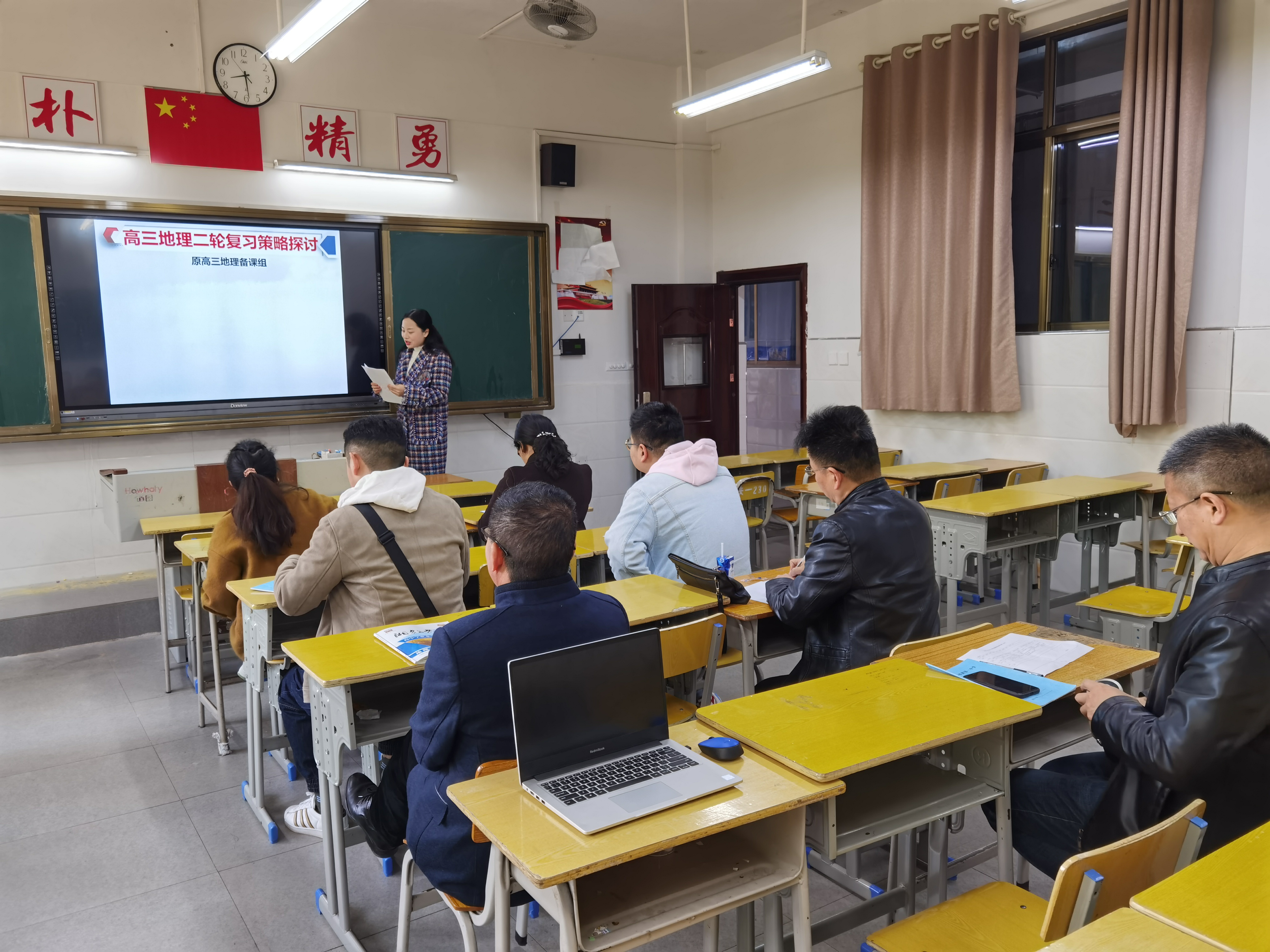 首先由上届高三地理备课组组长李丽华老师进行了经验介绍,然后由本届高三地理备课组长唐旭东老师发言,他首先传达了这次参加邵阳会议领会的精神,然后结合本组情况谈了二轮复习的方案。最后教研组长彭奕老师对1月份的8省联考的地理试卷进行了针对性的分析,并且谈了对国家教育部下发的高考命题指导文件的解读。