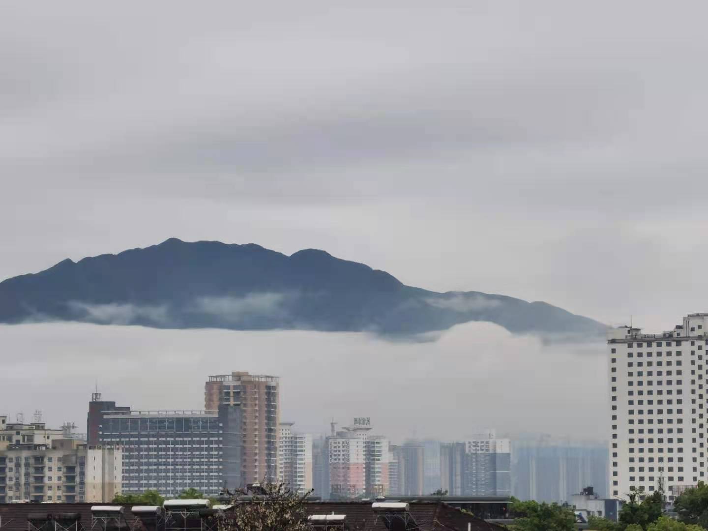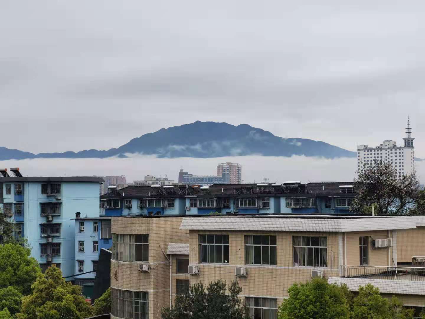 4月的怀化,雨水多。校园的致知楼上,突然看见雾锁凉山。让学生讨论此现象产生的原因。
