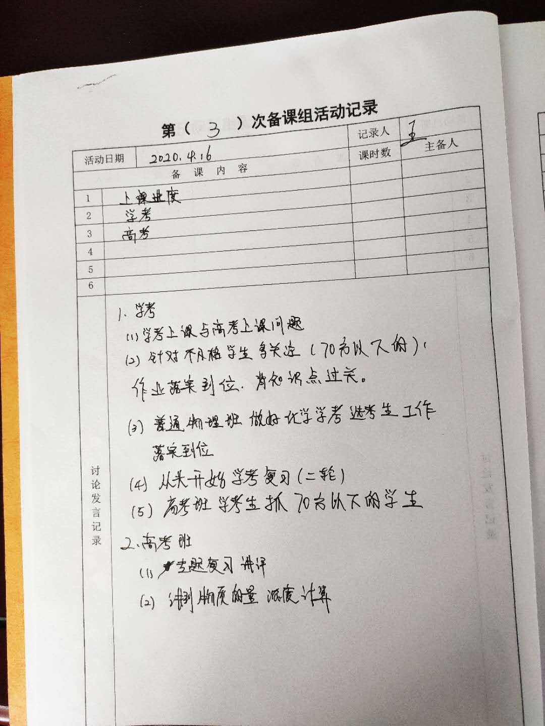 高二化学备课组开学线下备课