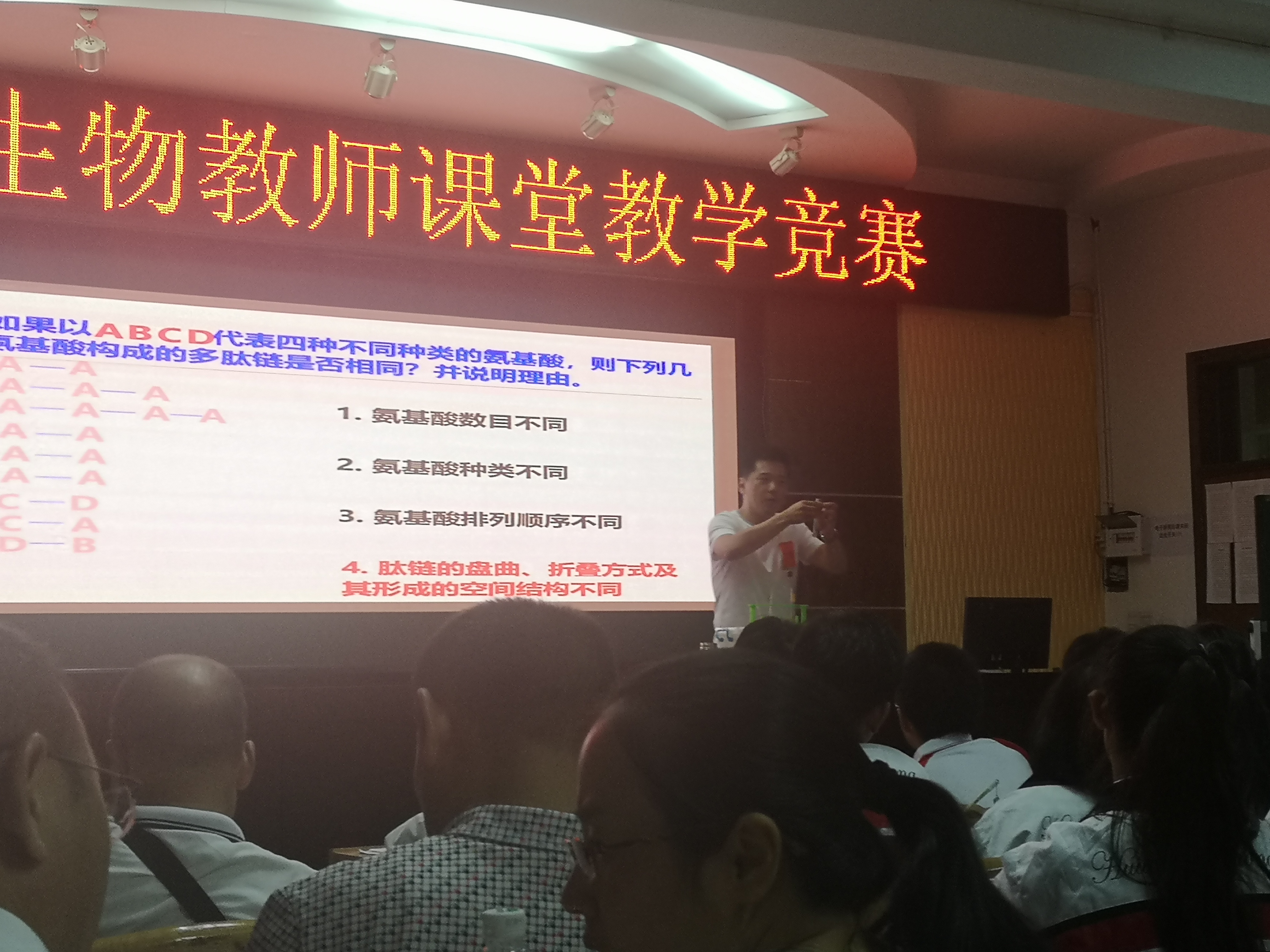 9月26日,由怀化市教科院主办的怀化市高中生物教师课堂教学竞赛,在会同第三中学落下帷幕。我校袁鸣孺老师参赛课题生命活动的主要承担者—蛋白质,荣获一等奖。