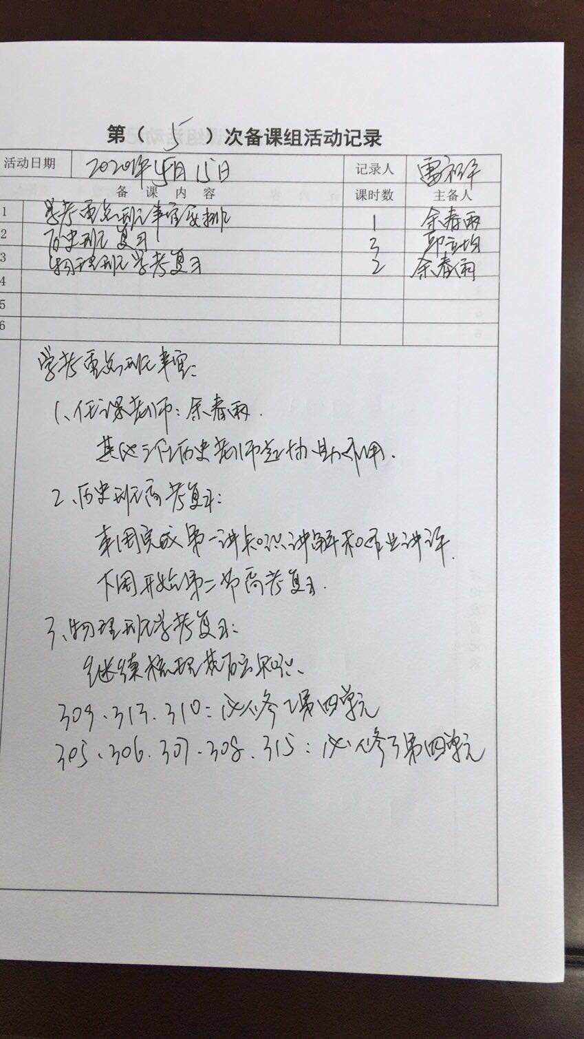高二历史于5月18日周五第四节课在致知楼303召开集体备课
