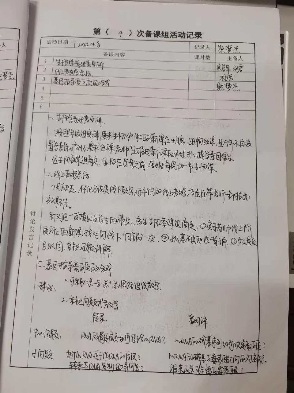 高一生物备课组活动