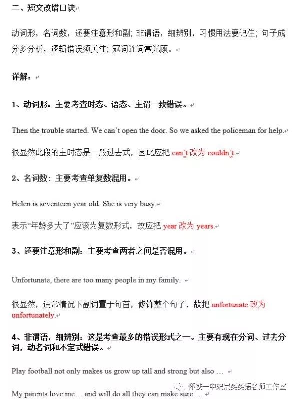 2.细读文章,找出错误并改正。一般要结合文章的上下文以及出题规律来做题。