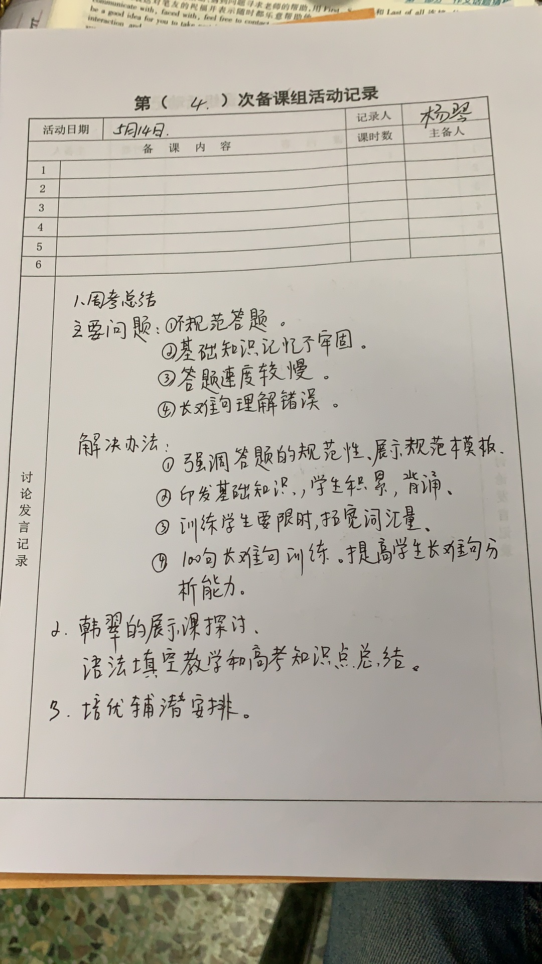 高三英语组 第四次 备课组活动