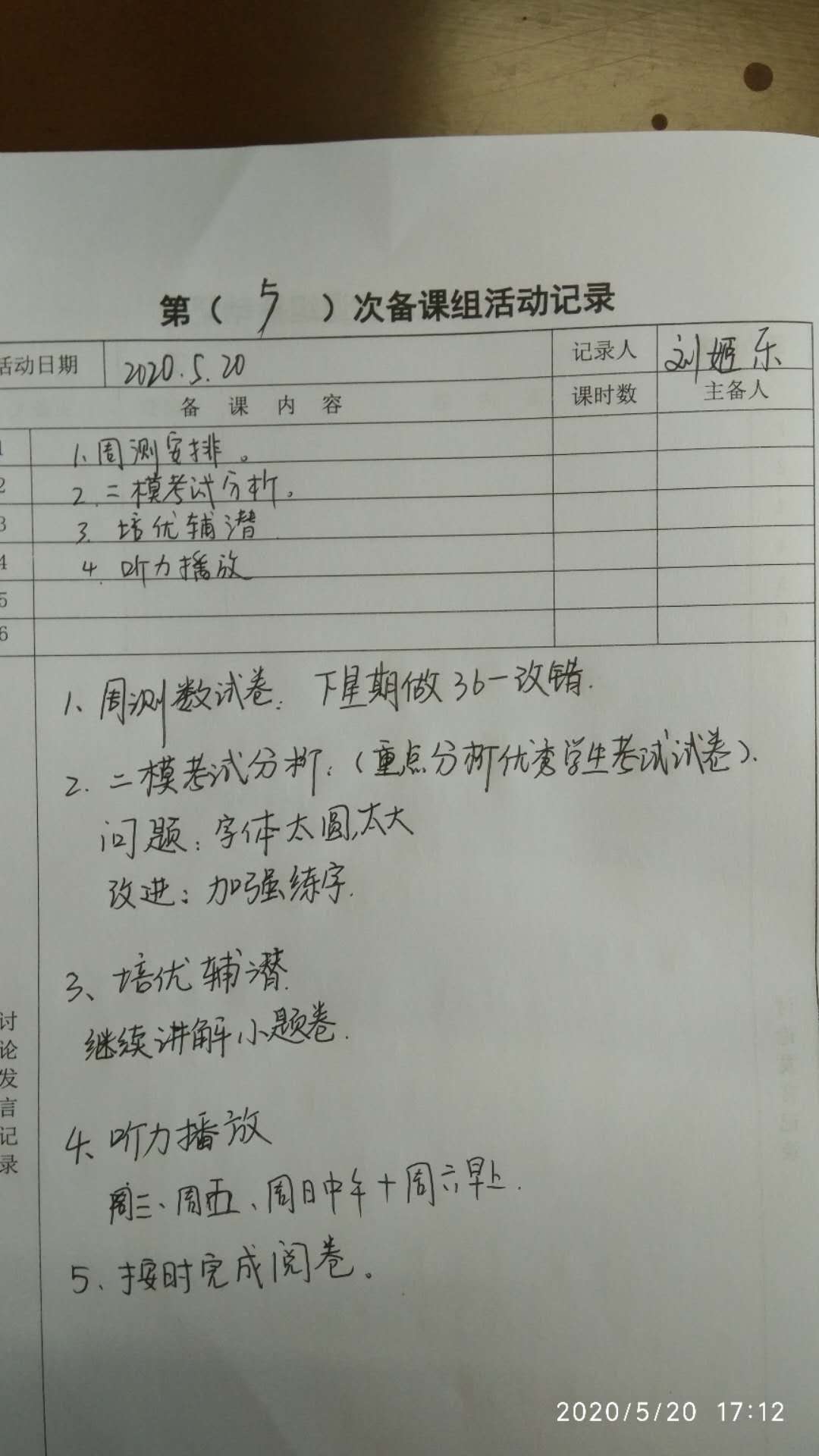 高三英语组 第五次 备课组活动