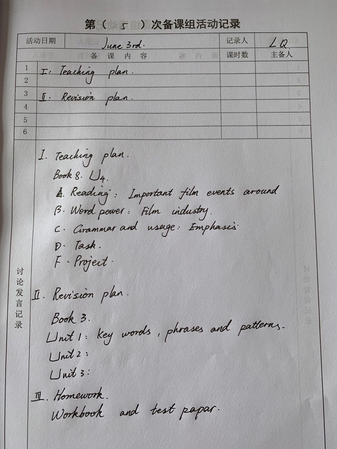 高二6月3日英语备课组活动