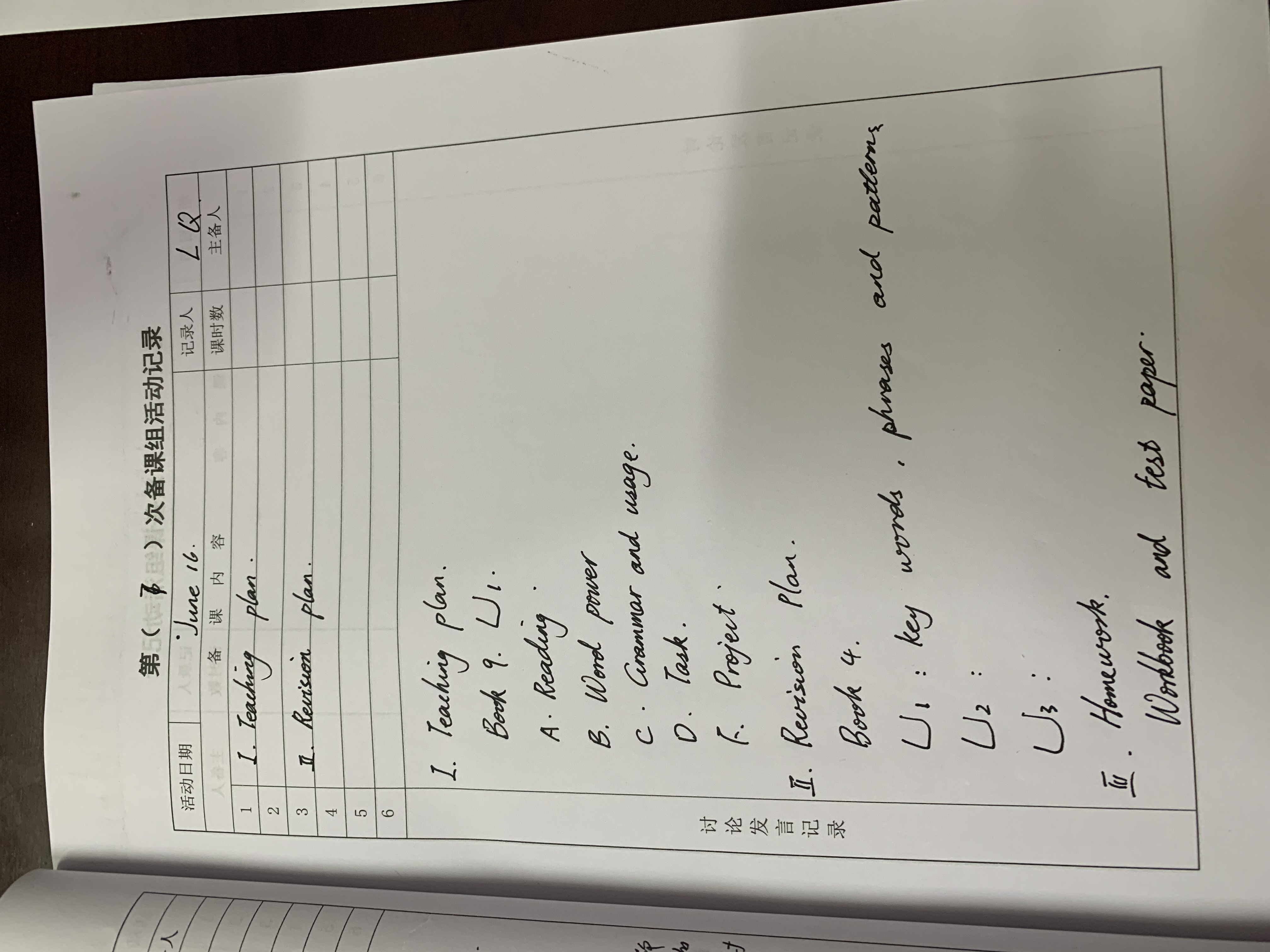 高二6月16日英语备课组活动