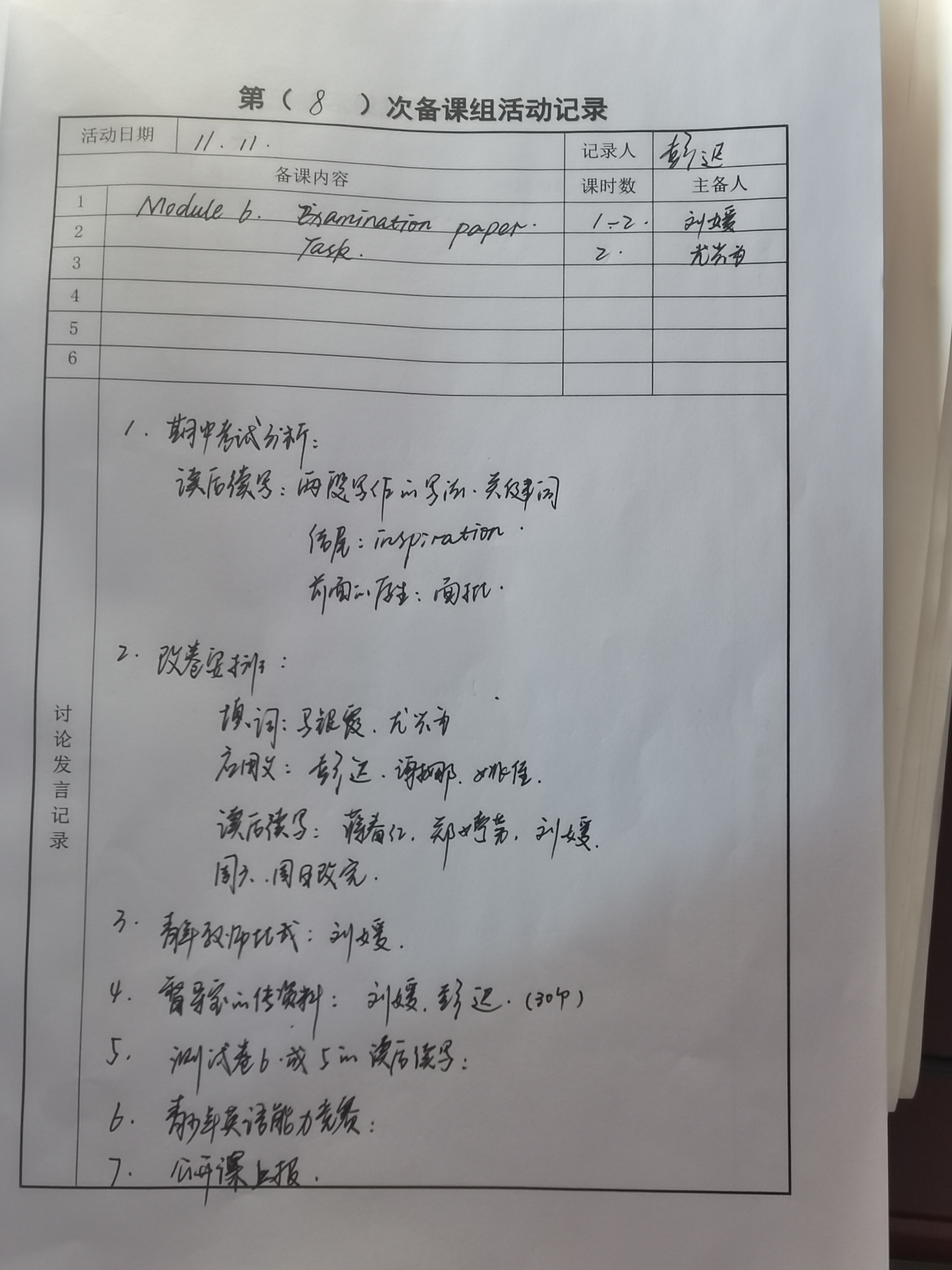 11月11日英语备课组教研活动