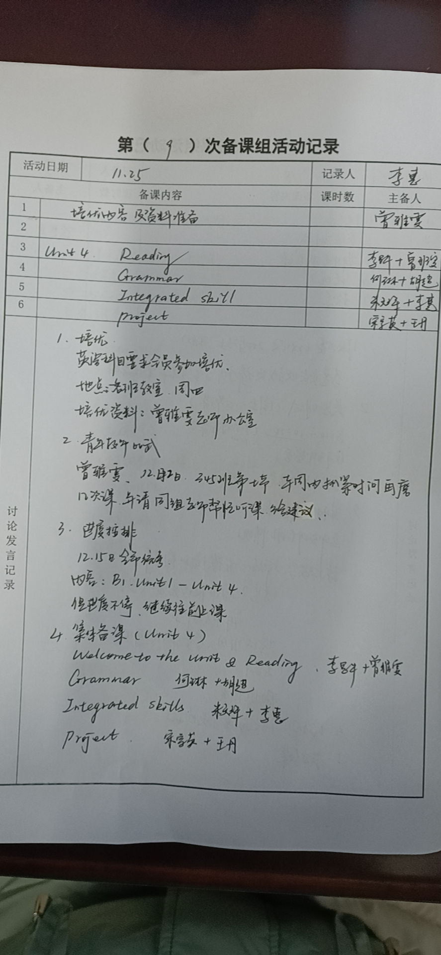 高一11月25日英语备课组活动