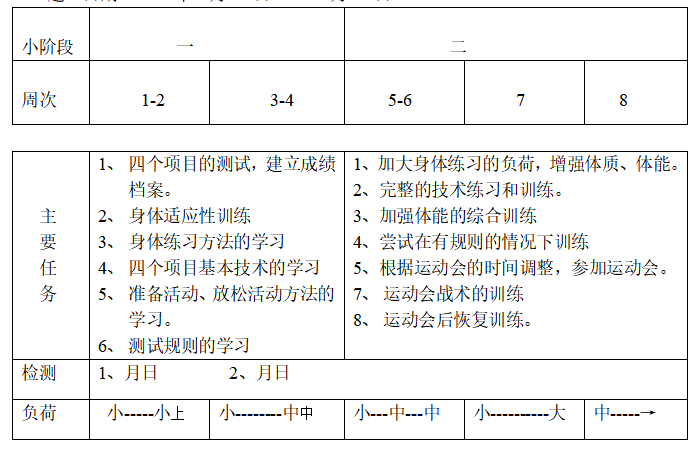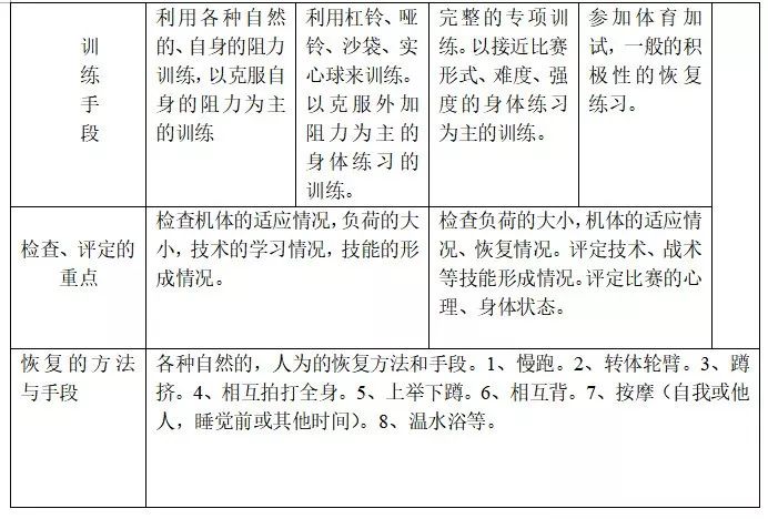 3、夏、秋、冬、春训阶段训练计划(专门准备期)