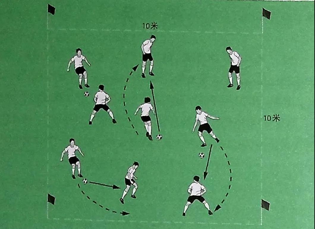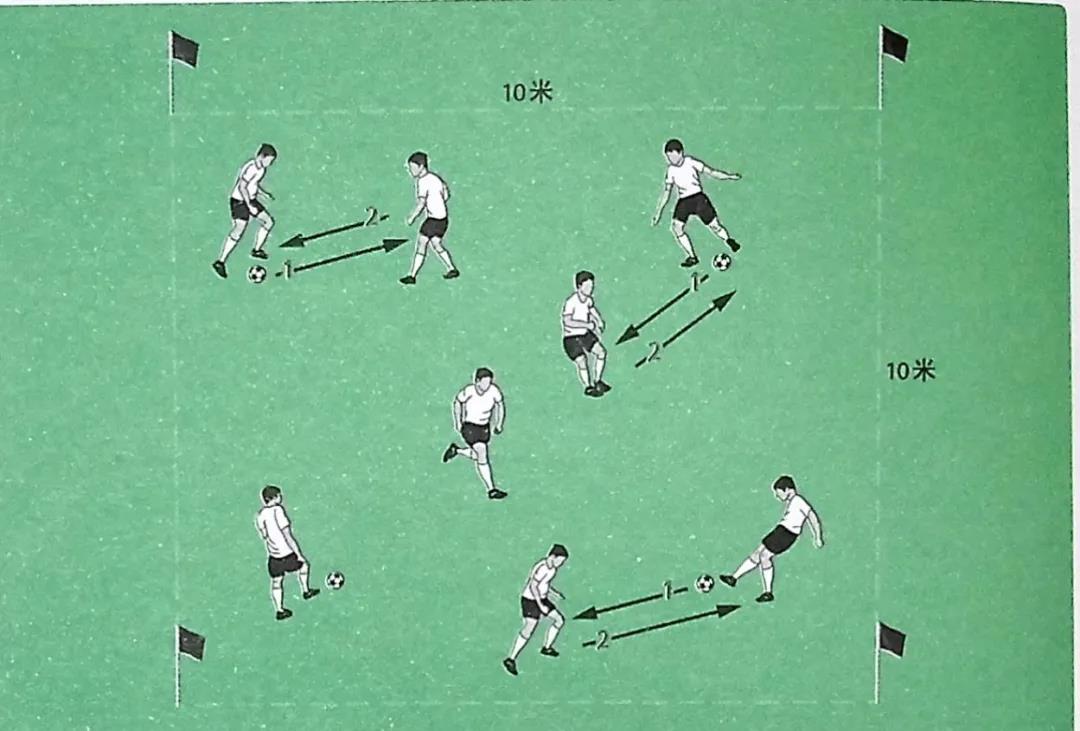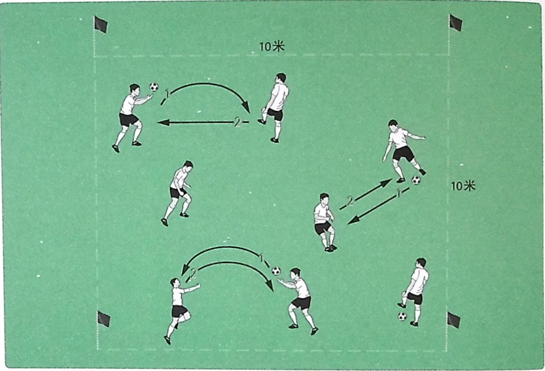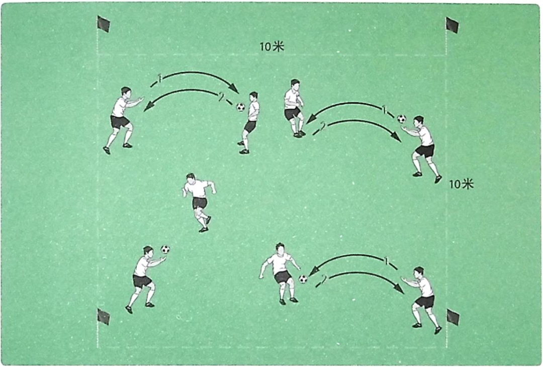 所有队员站在训练区域内,每两名队员为一组,每组一名队员持球。无球队员在训练区域内跑动,有球队员喊出无球队员的名字后向其传低平球(短传),无球队员必须立即将球回传给传球者。然后双方互换任务。