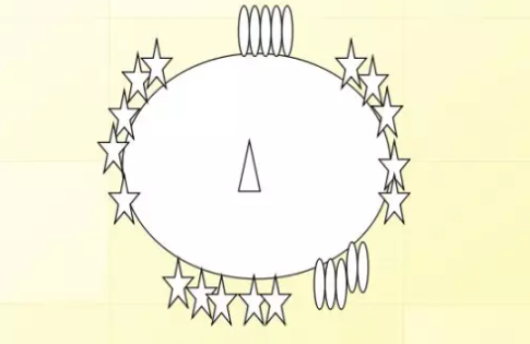 游戏方法:场地队形如图。裁判发令后,排尾持接力棒从篱笆中间爬行爬向排头,将接力棒传递给排头,然后蹲下与排头拉手做篱笆。接力棒向后传到排尾,排尾接棒后再向排头爬,如此依次进行到最后,先将接力棒交给排头举起的队为胜。