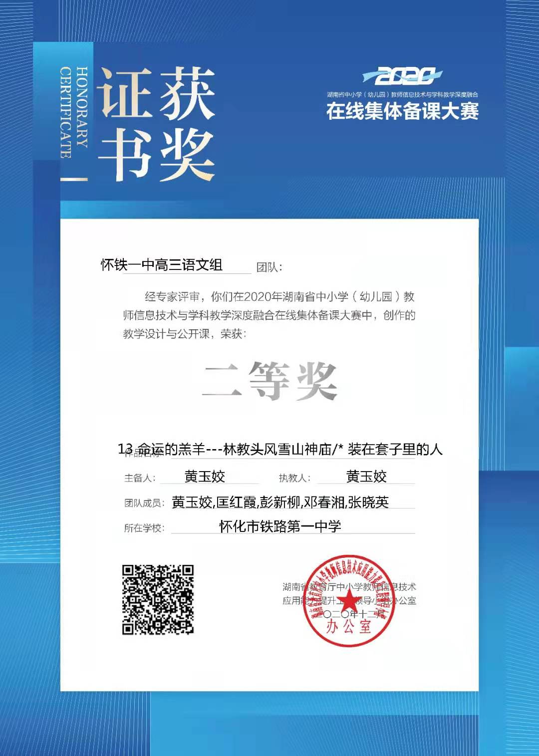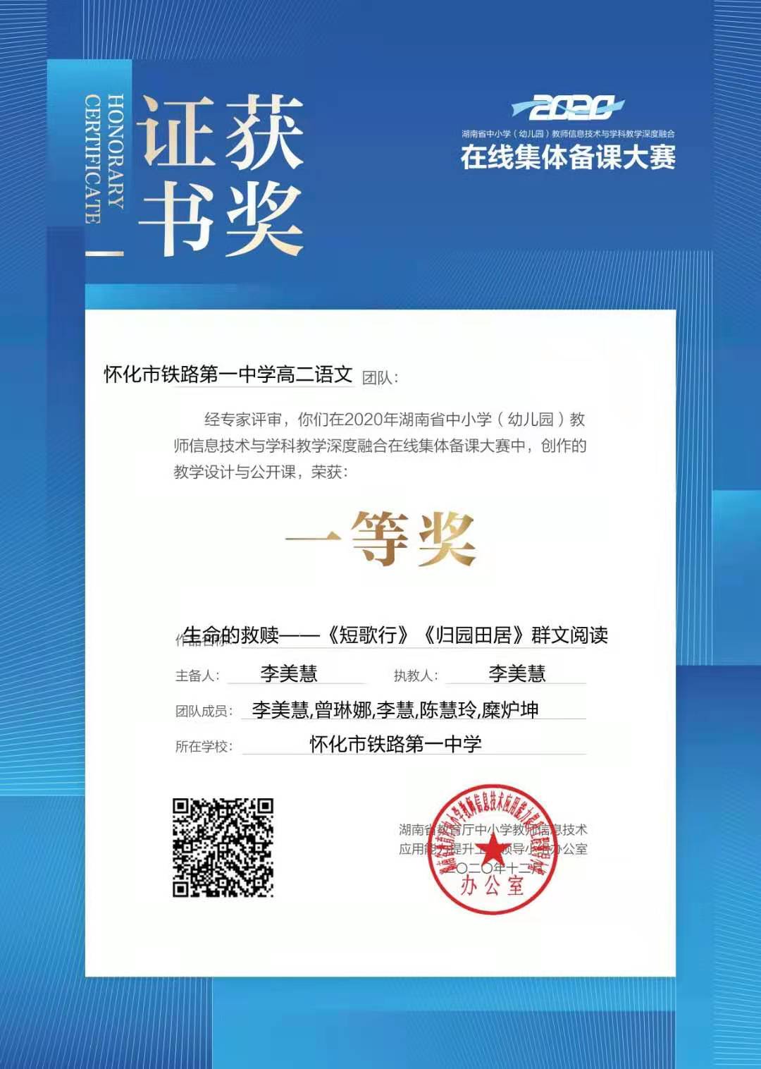 我校语文教研组两个团队在2020湖南省集体备课大赛中获奖