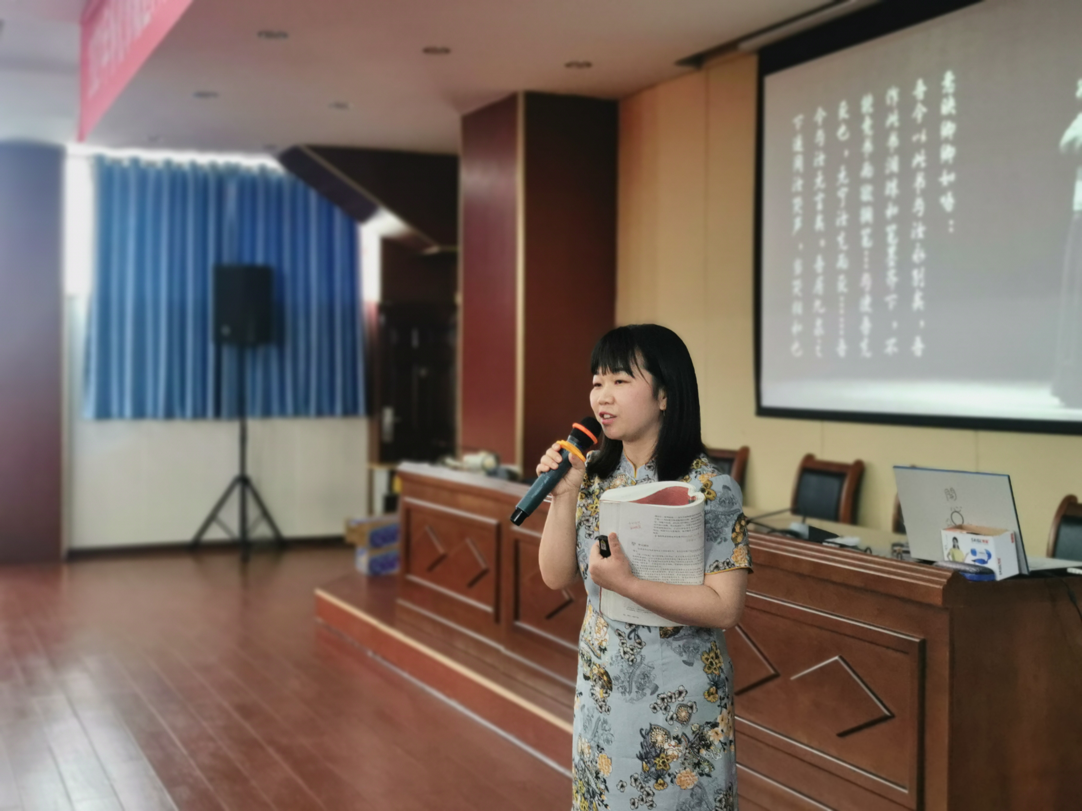 王苹老师优雅古典的旗袍、温婉柔和的声音、绵长凄婉的配乐加之声情并茂的朗诵,即刻将人引入那战火纷飞的清朝末年。王老师由示范朗诵引入,再让学生自读自悟,引导同学们思考“情与理”的关系,带领学生真正走进文本,感悟林觉民将“爱妻”升华为“爱国”,“爱国”与“爱妻”融为一体的情感。