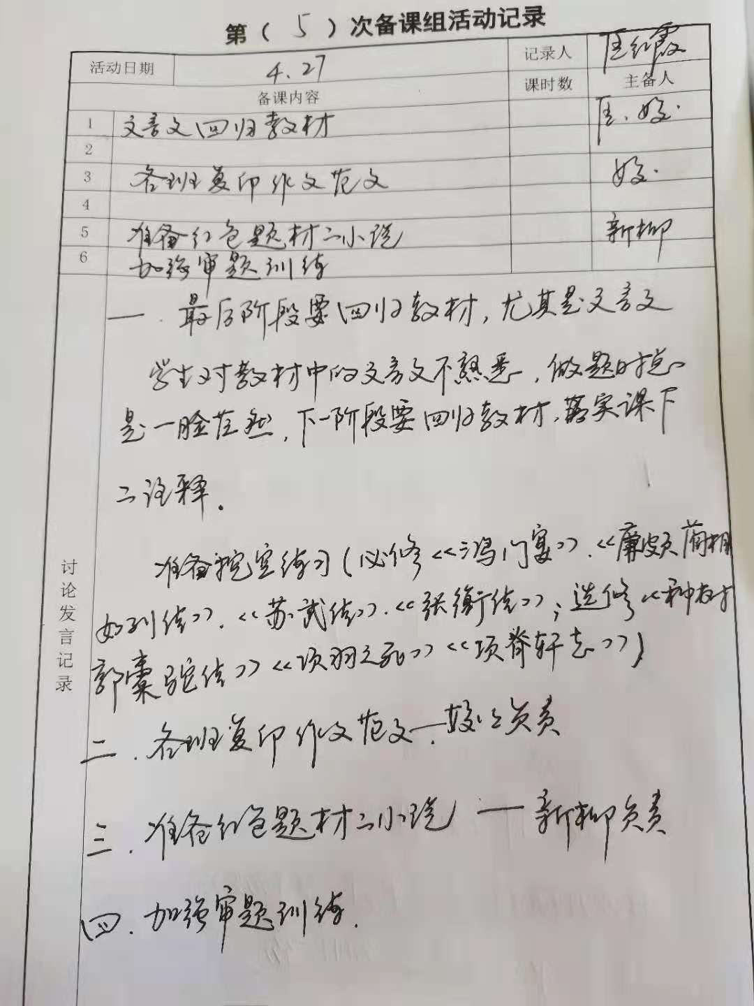 高三语文备课组会议(4.27)