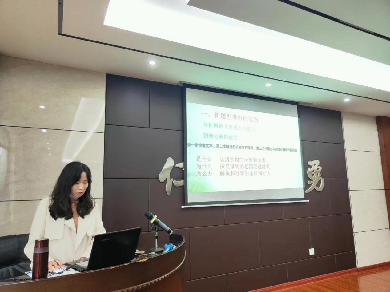 彭新柳老师首先以2021年全国新高考Ⅰ卷的主观题为切入点,从新型试题分析、新题型的分类、新题型的解题策略三方面对主观题重难点进行了讲解。她重点强调要提升学生的概括能力、分析能力、鉴赏能力和探究能力,注重作品形象含义的多维探究,注重探讨作品主题中蕴含的民族心理与人文精神,敢于批判质疑,发表创新性见解。教师在组织学生备考时,应注意培养文本意识,开拓学生视野,以不变应万变。