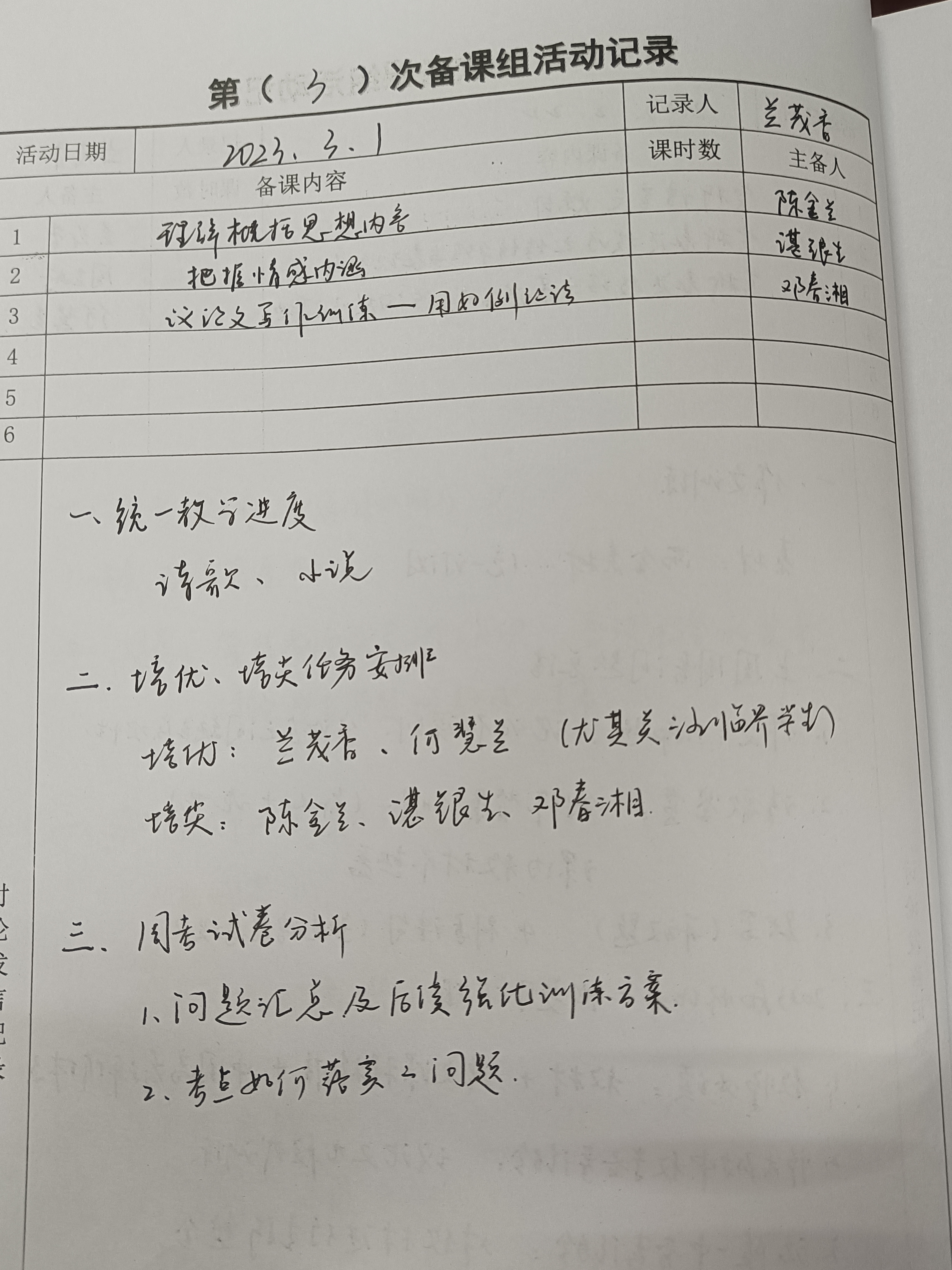 2023届高三下期语文备课组会议(2023.3.1)