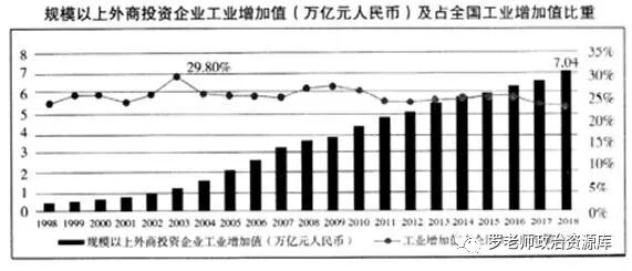 可紧扣材料,从1998年以来,我国规模以上外商投资企业工业增加值逐年增长,在我国工业增加值中占有较大比重,说明外商投资是推动我国经济发展的重要力量等方面,简要说明材料所反映的经济信息。