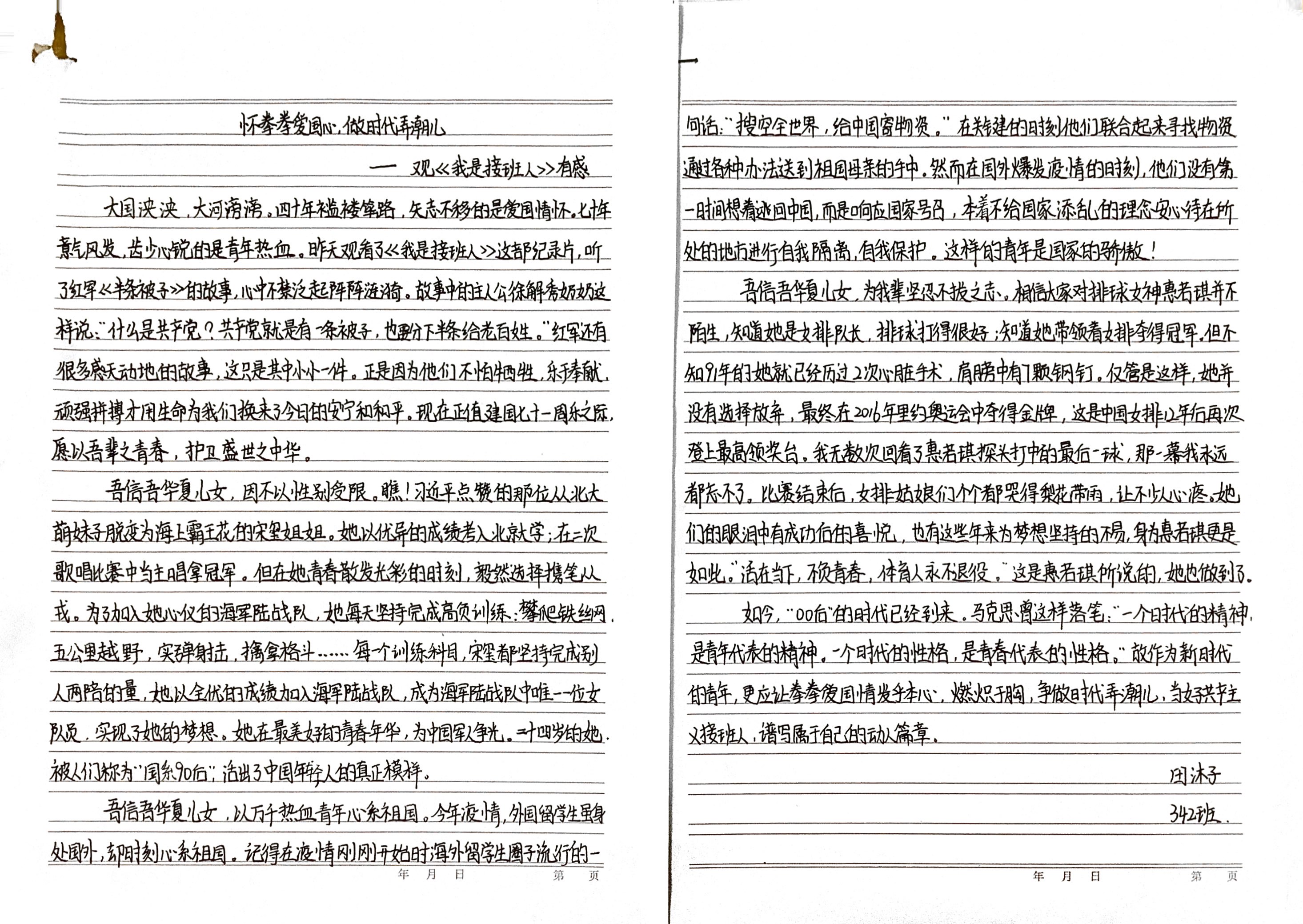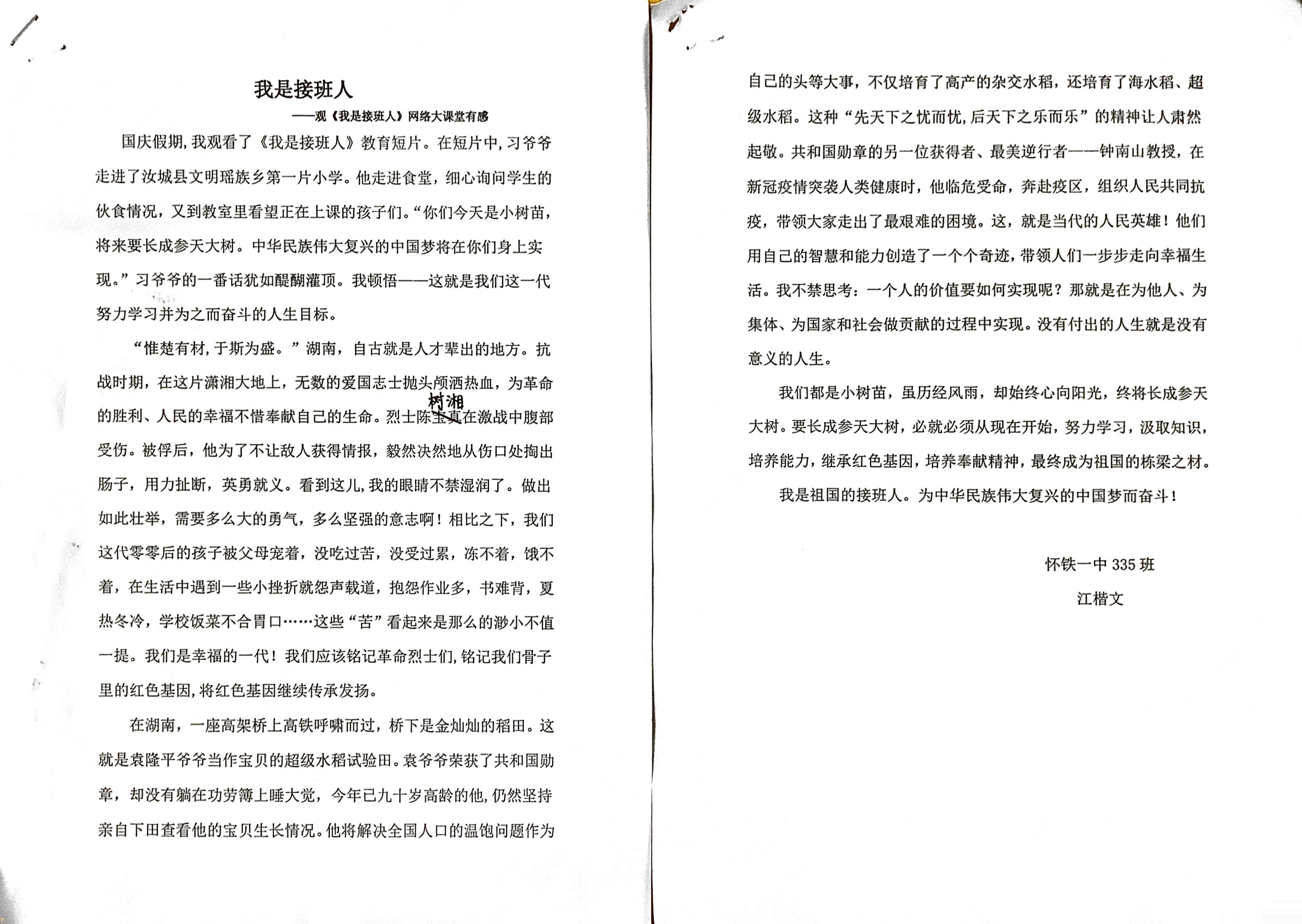 《我是接班人》观后感征文活动 高一年级部分获奖学生作品展示