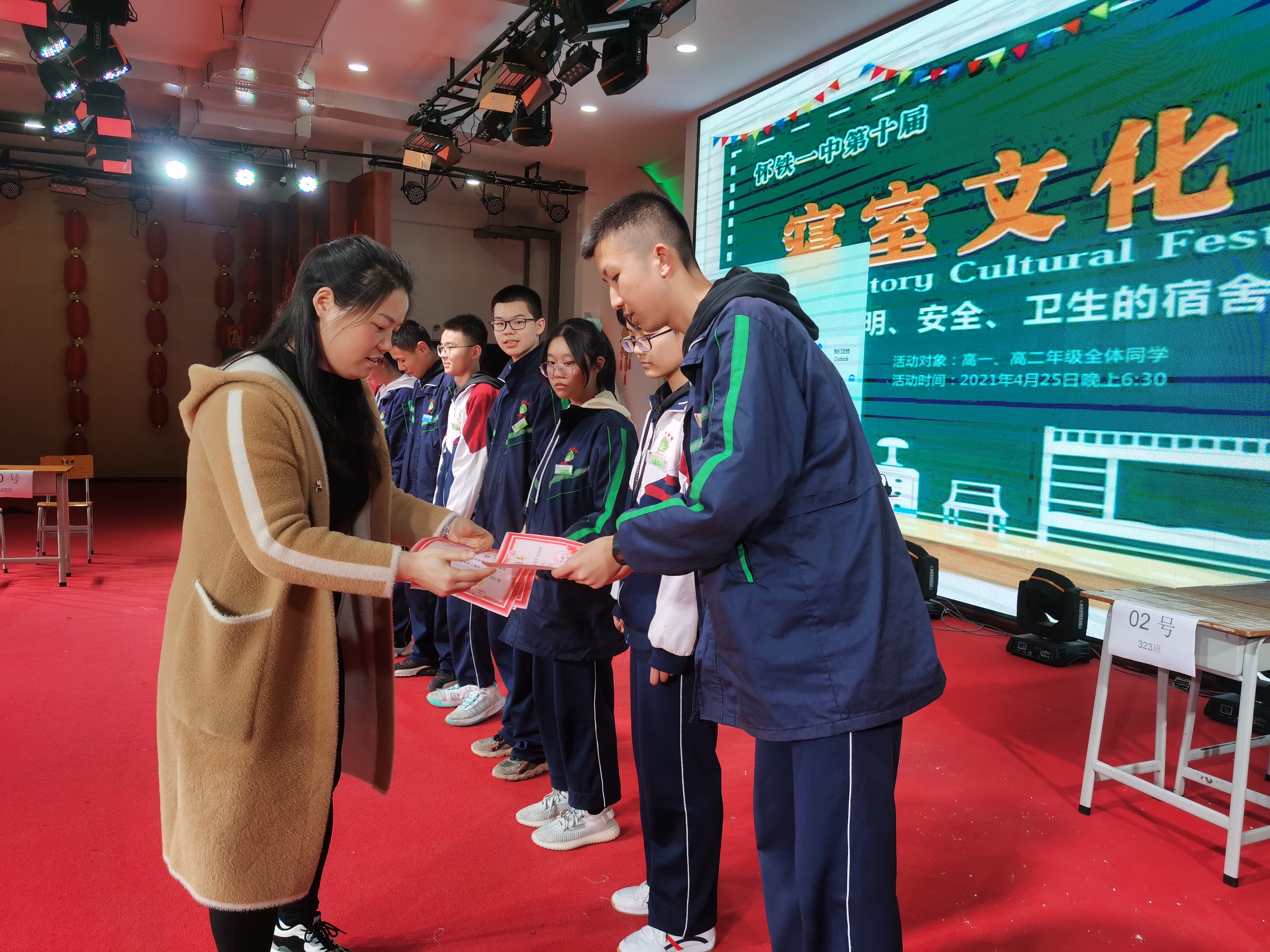 在展示了各寝室风采后,就是颁奖典礼了。只见获奖的同学精神抖擞地走上领奖台,脸上带着骄傲的神色,举着属于他们的奖状,站在聚光灯下,享受着这一刻。
