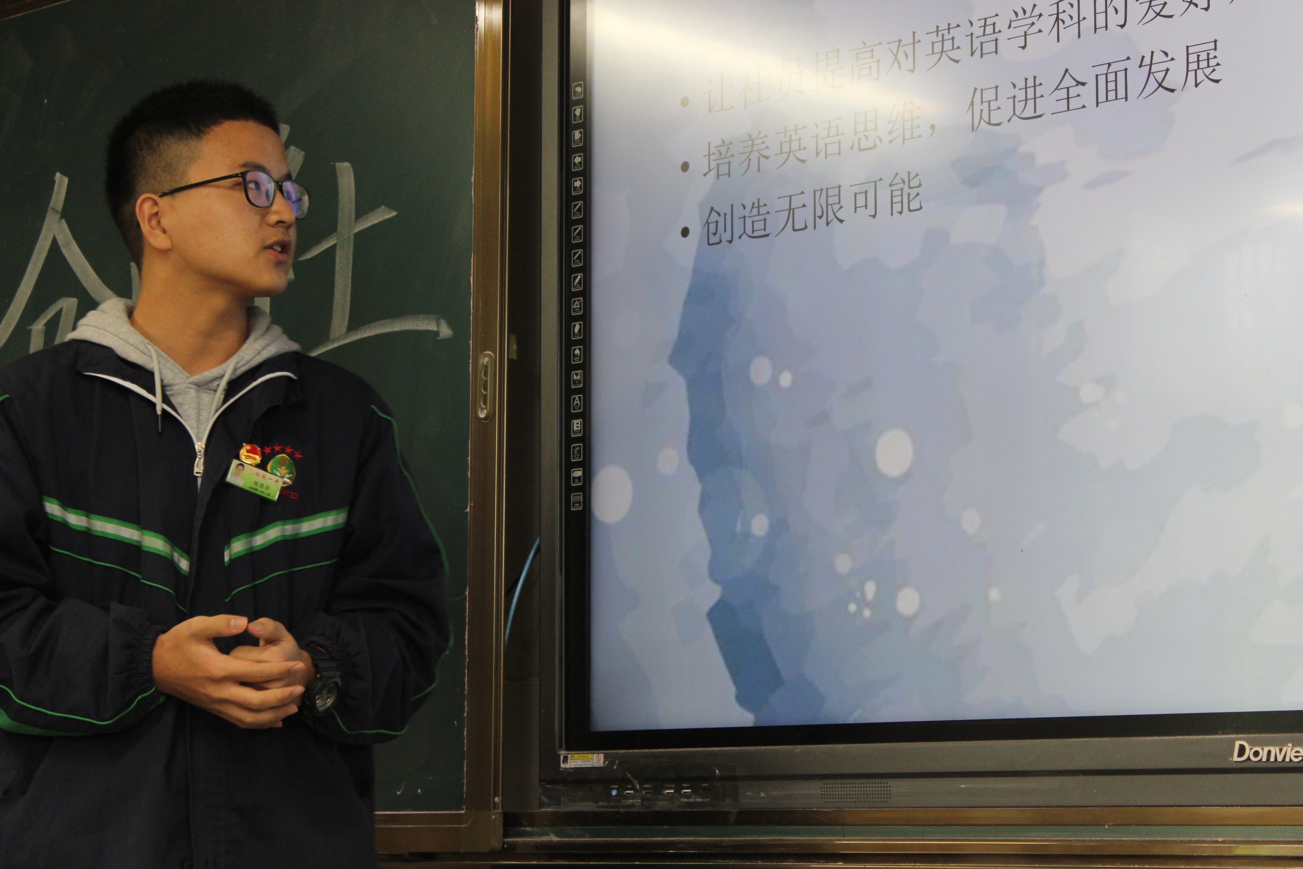 英语社团是课堂教学胡补充和延生,在于培养学生对英语胡兴趣,爱好,增长知识,提高技能,丰富学生的课余文化生活。给爱好英语的同学一个良好学习环境。