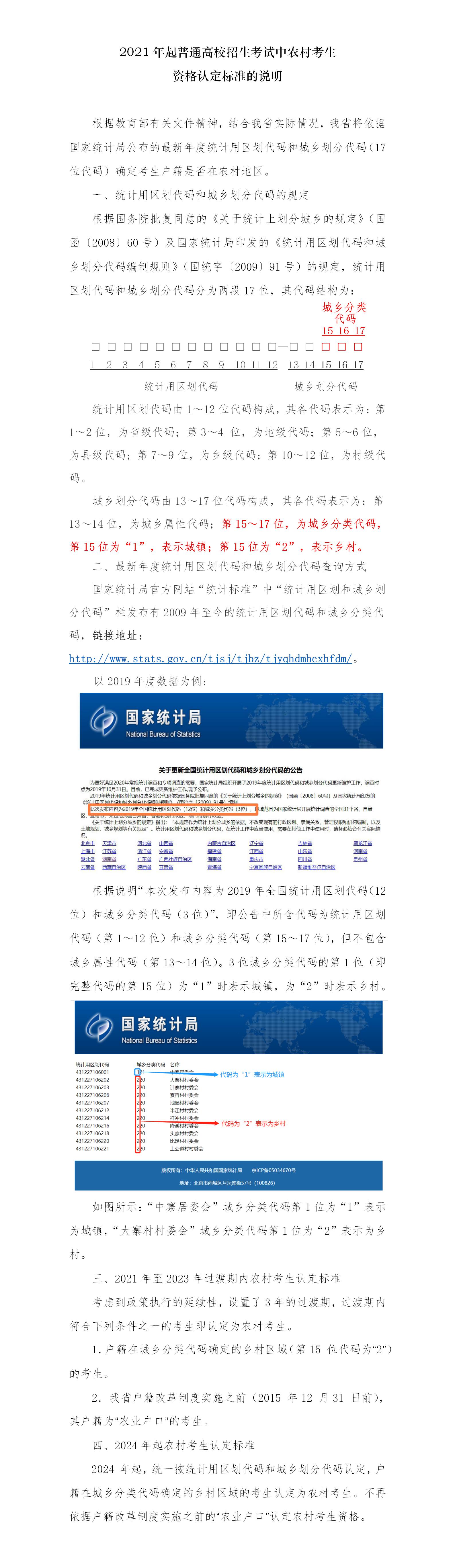 2021年起普通高校招生考试中农村考生 资格认定标准的说明
