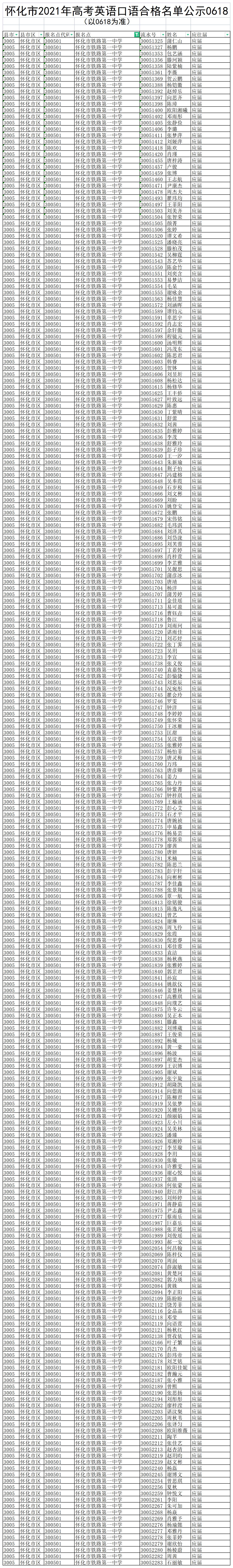 2021年怀化市高考英语口语合格万博二维码扫描登录 报名点考生名单