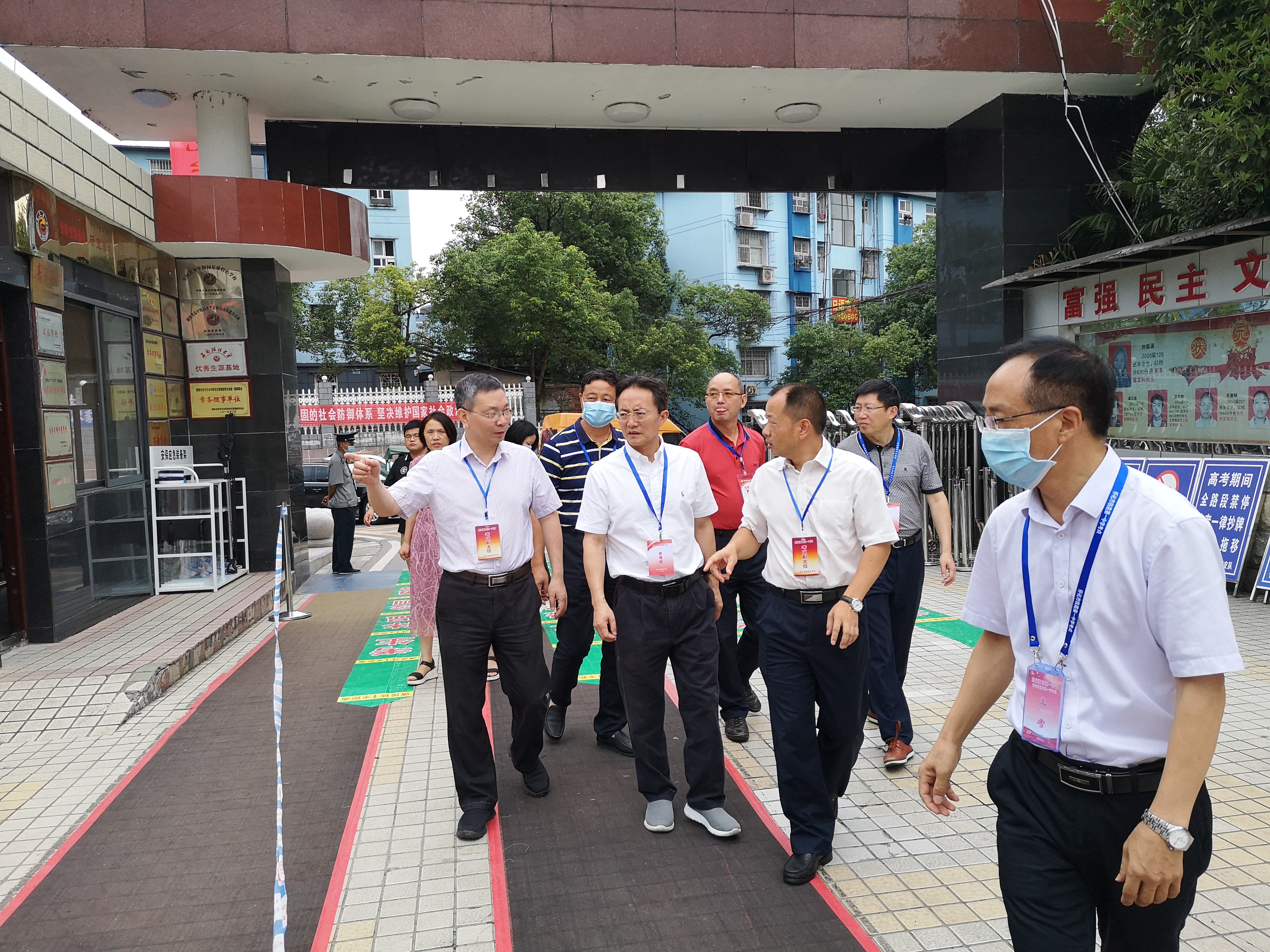 7月6日上午,湖南省教育厅党组副书记、副厅长王瑰曙一行巡视万博二维码扫描登录 考点,对考点监考、监控、试卷保密、后勤服务保障、考试宣传等准备工作进行了严格细致的检查和指导,怀化市委副书记陈恢清和市教育局党委书记、局长郑湘陪同巡视并指导工作。王瑰曙副厅长高度评价万博二维码扫描登录 考点宣传标语:营造了温馨、轻松而不失庄重的高考氛围,值得借鉴学习。
