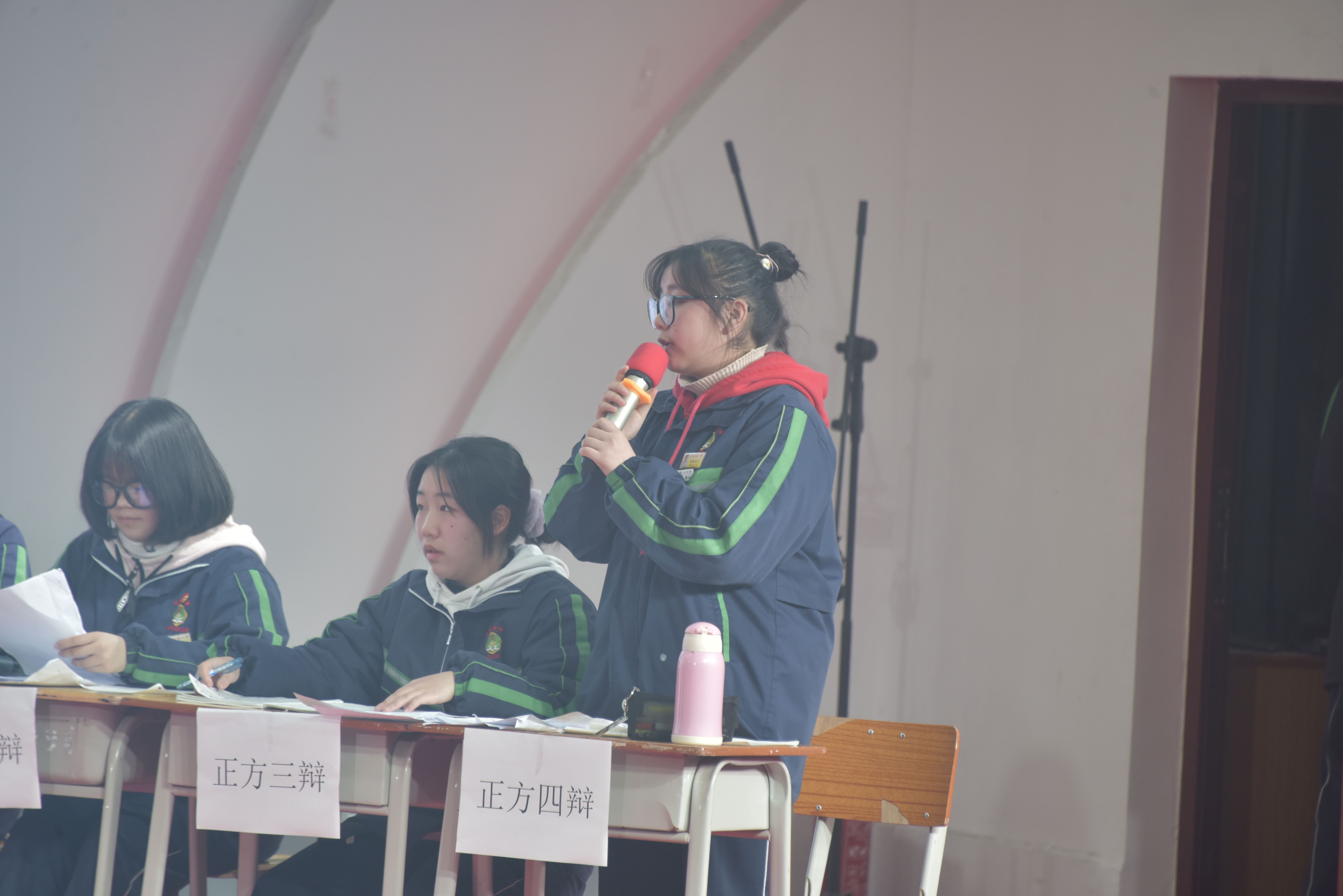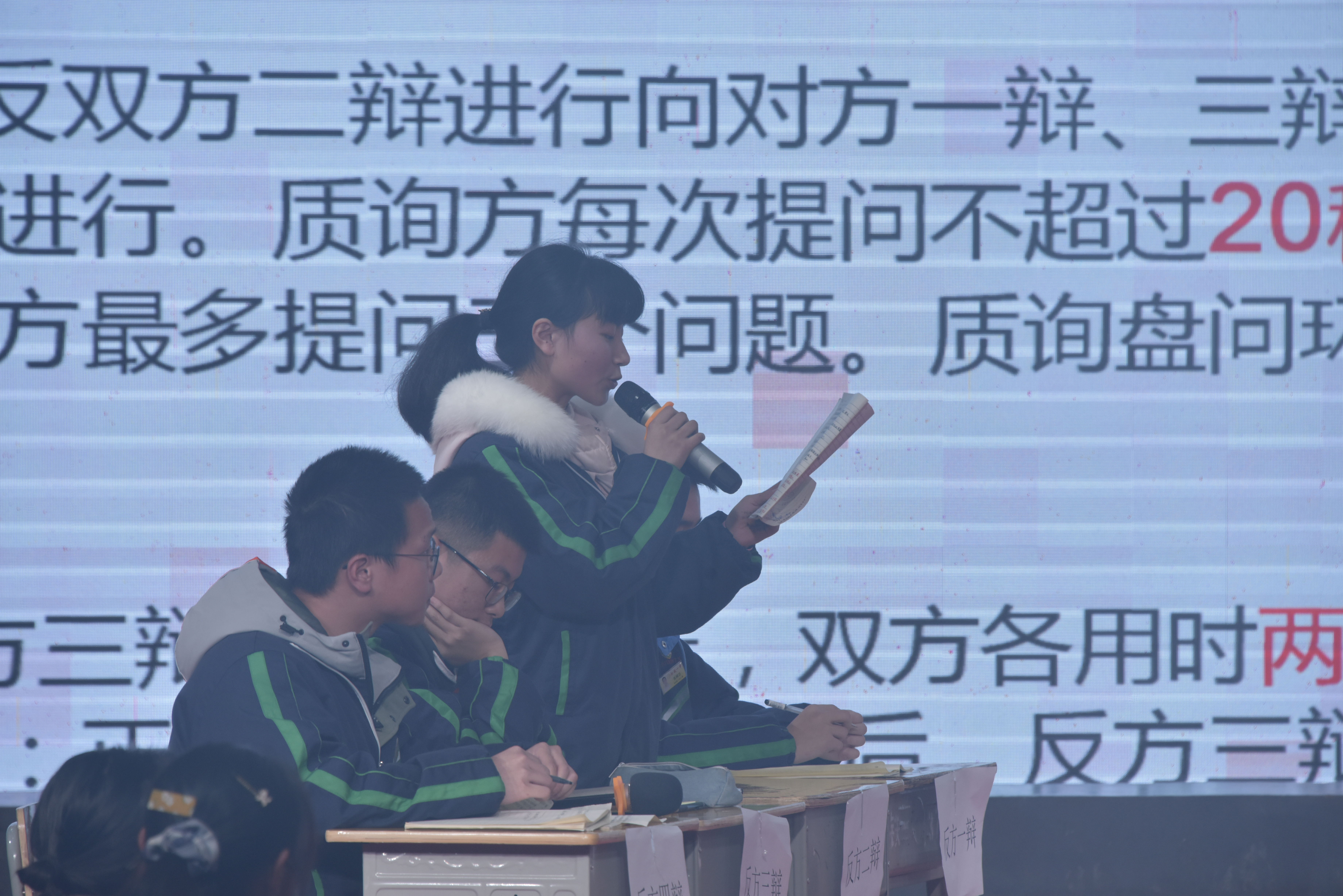 20201228日,辩论赛决赛如期而至,大礼堂内更是座无虚席。经过一轮又一轮的比拼后,高323班与高332班脱颖而出,比赛还未开始前,双方辩手已经摩拳擦掌,跃跃欲试,准备开始这场擂主的争霸,台下观众更是热情高涨,纷纷为自己所支持的辩手们加油助威。下午五点整,在主持人精彩的开场白后,令人期待已久的辩论赛决赛终于开始了。